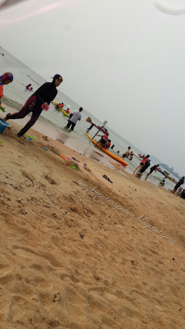 Kat pantai ni pon tak lama, aryan kata air dia tak sedap..