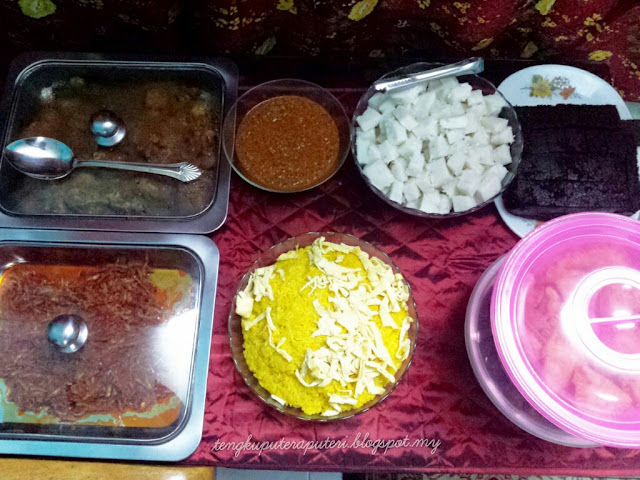 Menu malam tadi adalah nasi impit, kuih kacang, rendang ayam, pulut kuning, sambal ikan bilis..